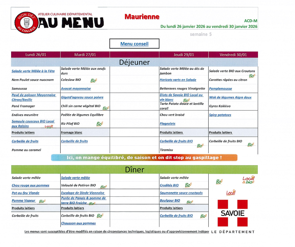 Menus de la cantine